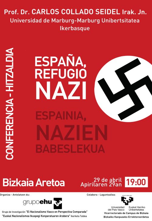 El 29 de este mes Carlos Collado Seidel dará una conferencia en el Bizkaia Aretoa (Paraninfo de la UPV-EHU) sobre «España, refugio nazi».