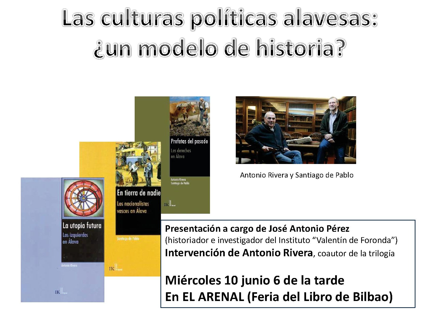 Presentación de la trilogía sobre las culturas políticas alavesas el miércoles 10 junio en la Feria del Libro de Bilbao
