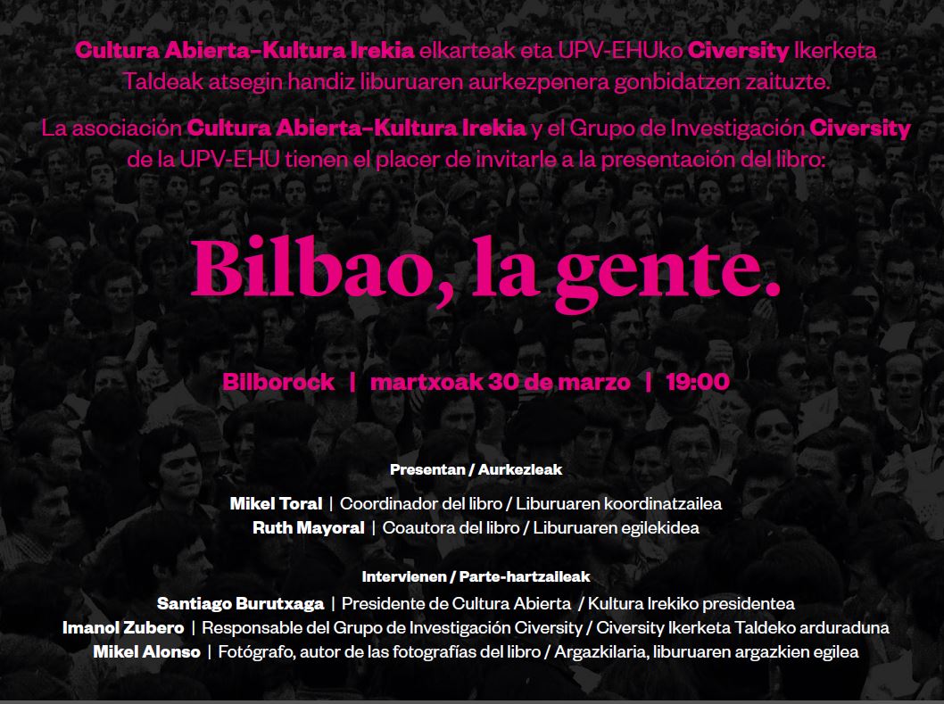 Durante más de un año desde la asociación Cultura Abierta y el grupo de investigación de la UPV/EHU Civersity hemos estado trabajando para sacar adelante una publicación que hiciese balance de los cuarenta años transcurridos desde las primeras elecciones municipales democráticas (marzo de 1979) en Bilbao.