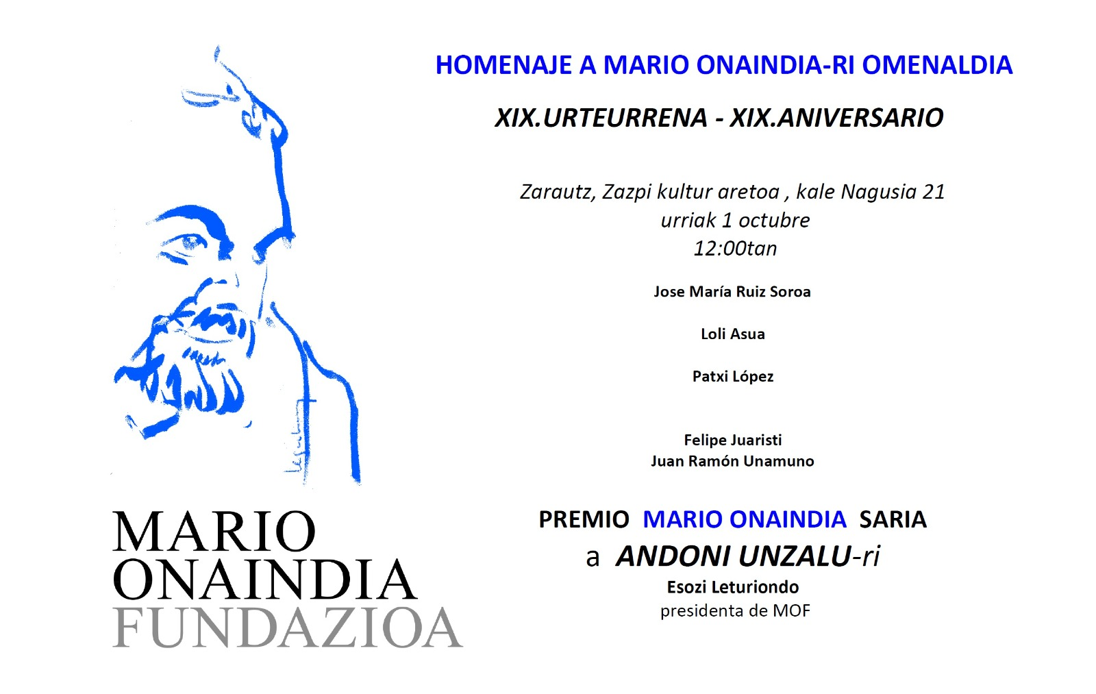 Homenaje a Mario Onaindia en Zarauz