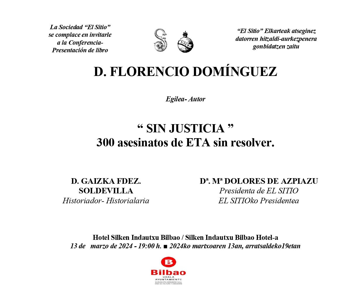 Presentación de «Sin justicia» en Bilbao