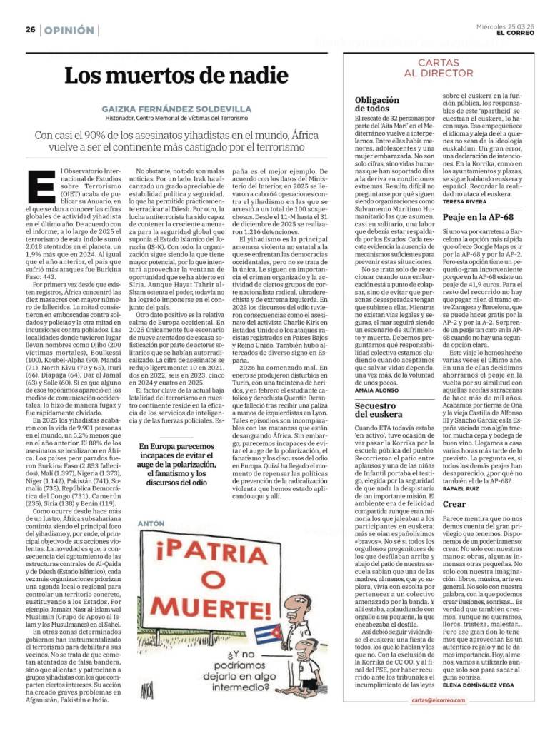 El Observatorio Internacional de Estudios sobre Terrorismo (OIET) acaba de publicar su Anuario, en el que se dan a conocer las cifras globales de actividad yihadista en el último año. De acuerdo con el informe, a lo largo de 2025 el terrorismo de esta índole sumó 2.018 atentados en el planeta, un 1,9% más que en 2024. Al igual que el año pasado, el país que sufrió más ataques fue Burkina Faso: 443.