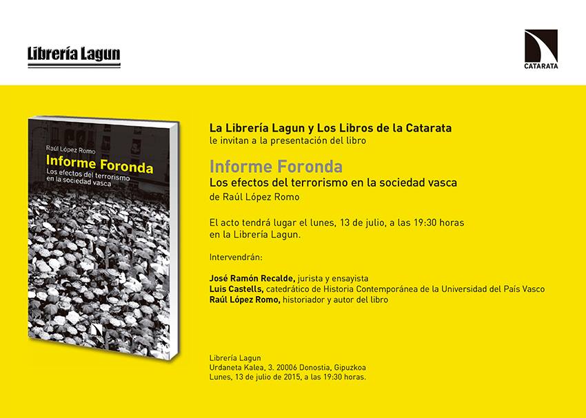 Presentación en San Sebastián del «Informe Foronda. Los efectos del terrorismo en la sociedad vasca» de Raúl López Romo