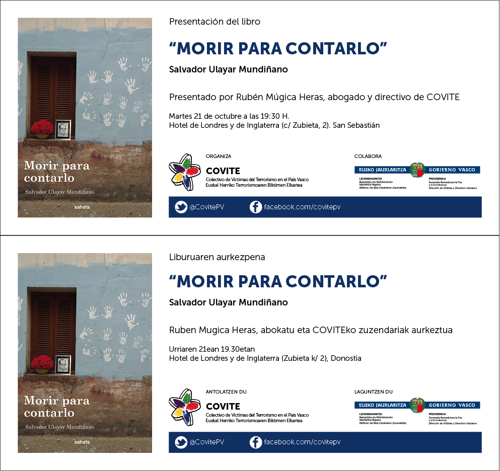 AURKEZPENA: Hurrengo urriaren 9an «Políticas de memoria. Qué, cómo y para qué recordar» liburua aurkeztuko dute, NH Canciller Ayala Hotelean (Gasteiz) arratsaldeko 19:00eta. Sarrera librea.