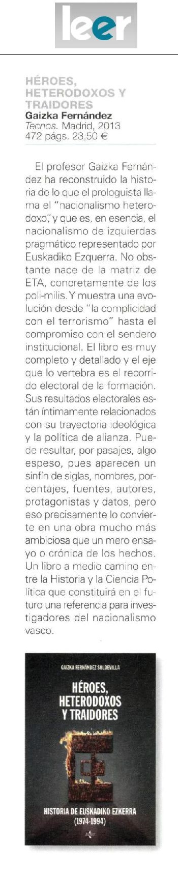 -FERNÁNDEZ SOLDEVILLA, Gaizka (2013): Héroes, heterodoxos y traidores. Historia de Euskadiko Ezkerra (1974-1994). Madrid: Tecnos.